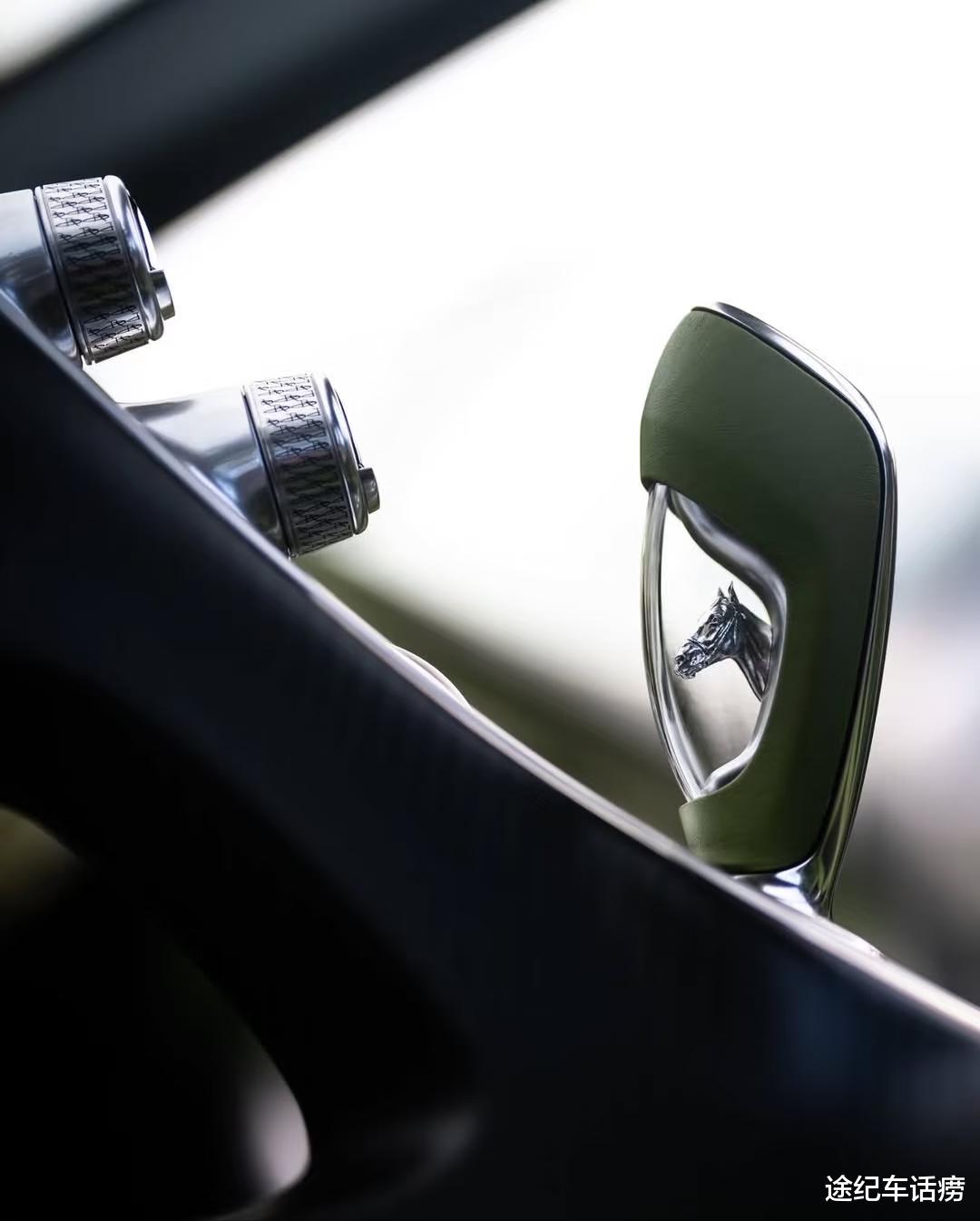 除此之外,车内还采用了巴黎定制格纹面料、绿色碳纤维饰板,座椅与门板上的马形刺绣更是手工缝制而成,每一处细节都彰显着 “专属感”。将汽车、雕塑、家具等艺术形式融为一体,难怪有人称它为 “移动的私人艺术馆”。