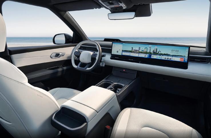 车内设计也有特色,新车采用了全新的家族设计语言,中控台采用T字型布局,上下双层结构均配有软性面料的包覆,灰白双拼色的设计更是进一步强化了座舱的精致气息。值得一提的是,新车在座舱智能化方面没有掉队,全系标配27英寸双联屏,屏幕分辨率达到4K超高清级别,外壳采用铝镁合金设计,系统UI界面精致得体,平时常用的功能菜单都可以在主界面找到,同时集成了部分液晶仪表的显示内容,看起来好像是一块智能交互触控大屏,为前排座舱营造了很浓的科技氛围。