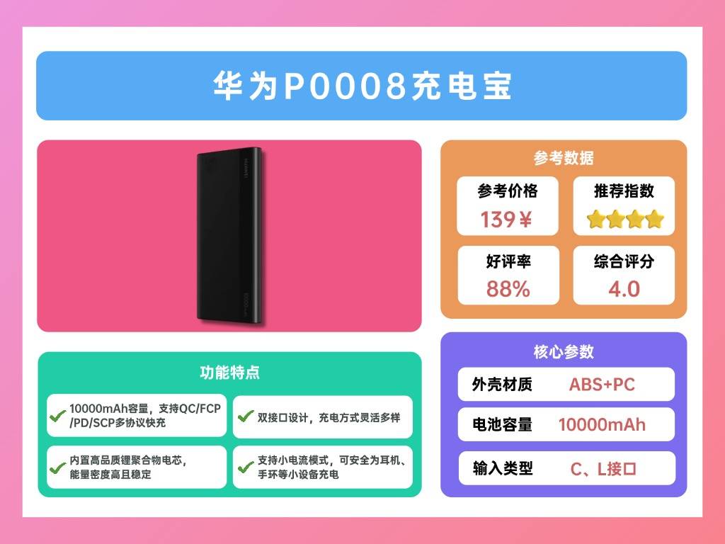 华为充电宝延续自家“超级快充”体系,支持66W快充和小电流模式,3C及德国莱茵认证保障安全,特别适合华为手机用户。