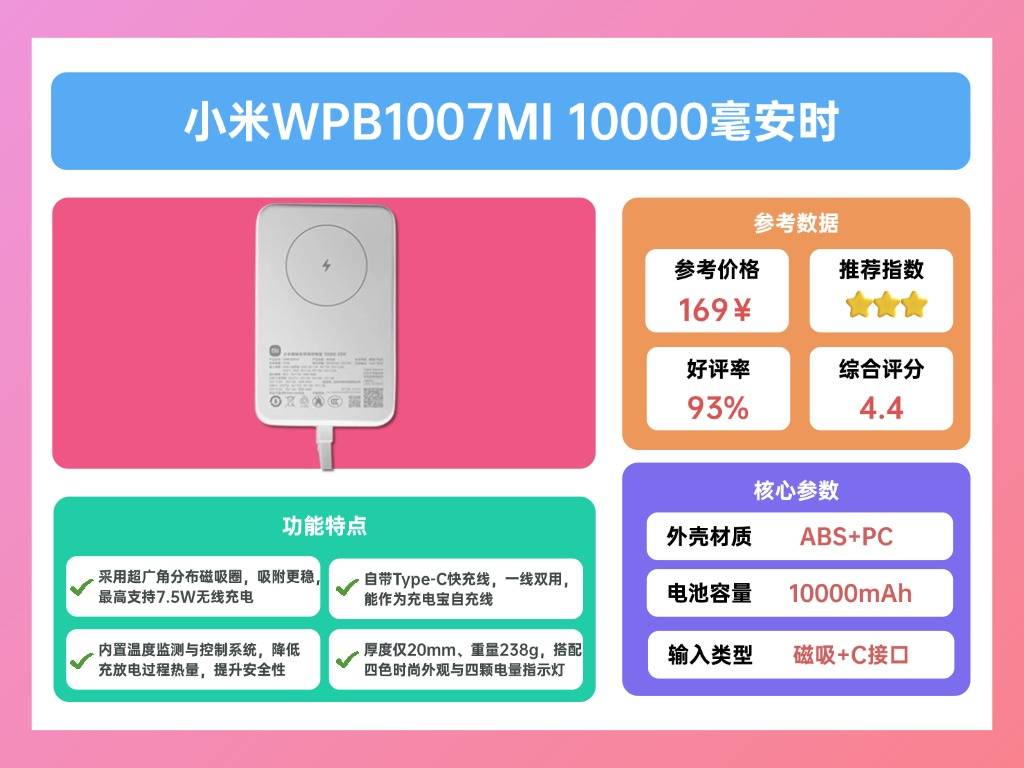 推荐型号:西圣PB磁吸充电宝10000mAh