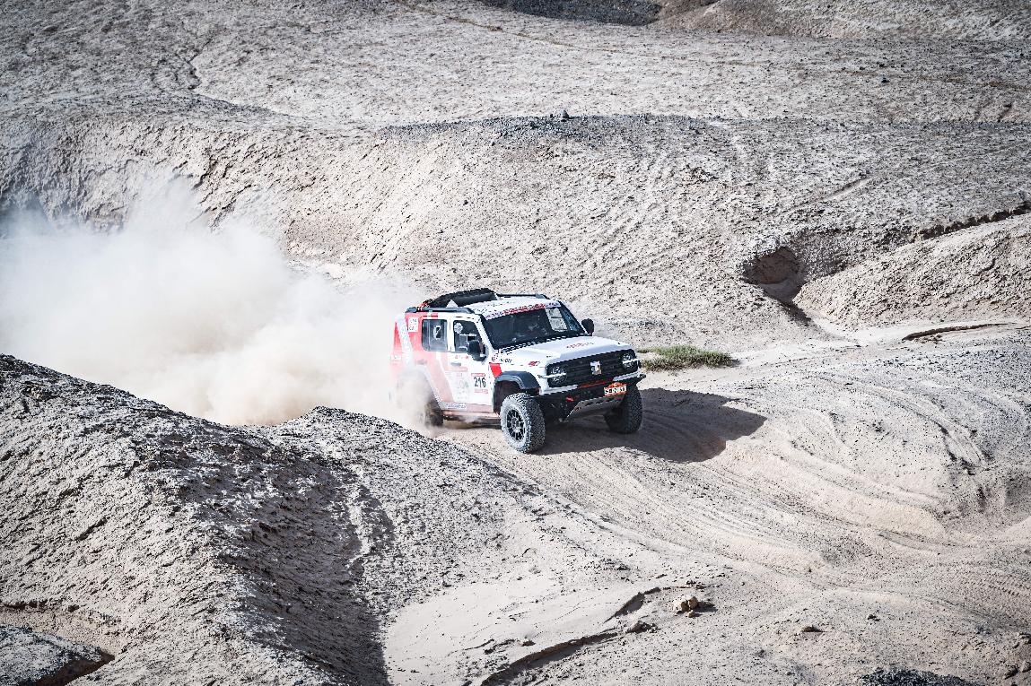 敦煌越野耐力赛作为中汽摩联认证的国家A级赛事,以严苛的赛道条件著称。赛段全程约1100-1200公里,特殊赛段约1000公里,涵盖河床、峡谷、戈壁滩、沙地沙丘等复杂地貌,对参赛车辆的通过性、耐久性、可靠性,以及驾驶者的技术、体能、毅力,均提出了近乎极限的考验。