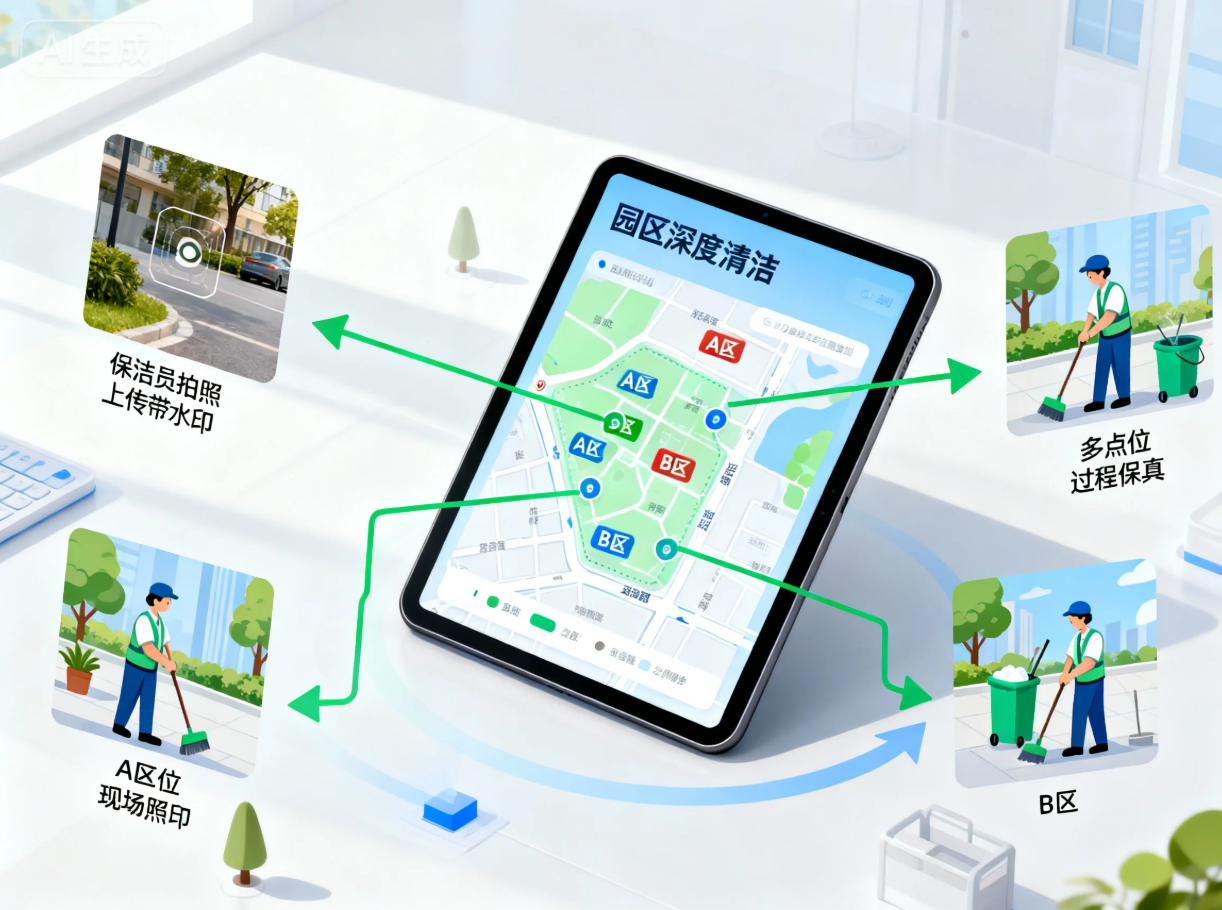 除了应急维修,物业管理的另一大难题是对保洁、绿化、保安等日常计划性工作的监管。过去,李明和主管们需要不停地在小区里巡查,才能确保工作质量,管理效率低下。