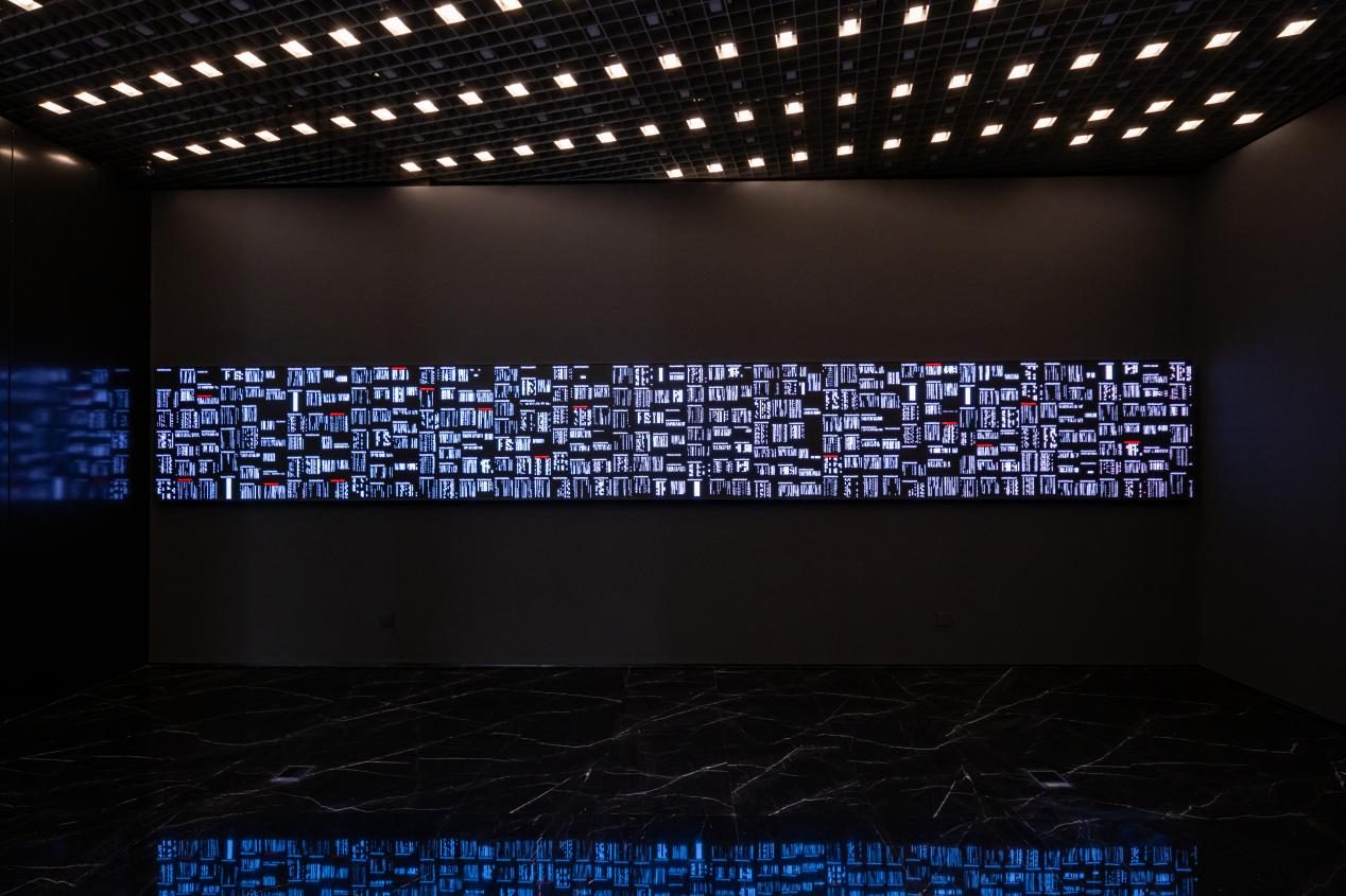 艾米·卡尔在北京数字经济算力中心的建筑里面呈现的巨型数字艺术作品《流息脉动》,将算力与生命节律交织,以算力中心的数据流为“血脉”,创造出一幅不断变幻的动态生命图腾,仿佛碳基生命与硅基智能在此刻交融共生。作品融合了实时的环境变化、建筑数据和人类心跳,正如无形的能量和信息贯穿万物,这件作品也揭示了与人类、自然和科技紧密交织的无形却无处不在的数据的流动。