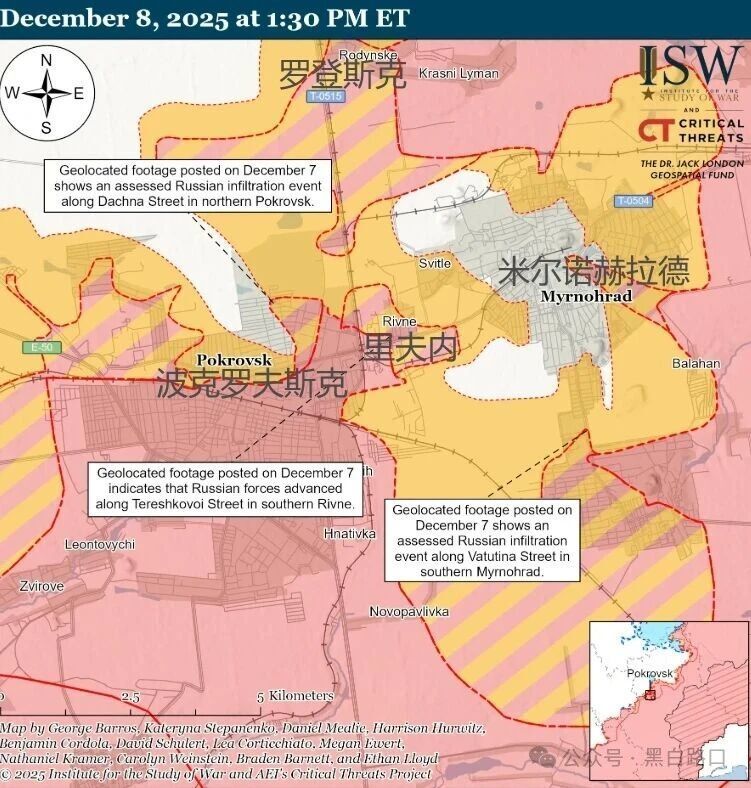 波克罗夫斯克方向,12月8日,《乌克兰真理报》证实乌军第25旅和第68旅几周前从利西夫卡和苏赫亚尔撤退,目前,乌军仍在坚守波克罗夫斯克北部和米尔诺赫拉德。