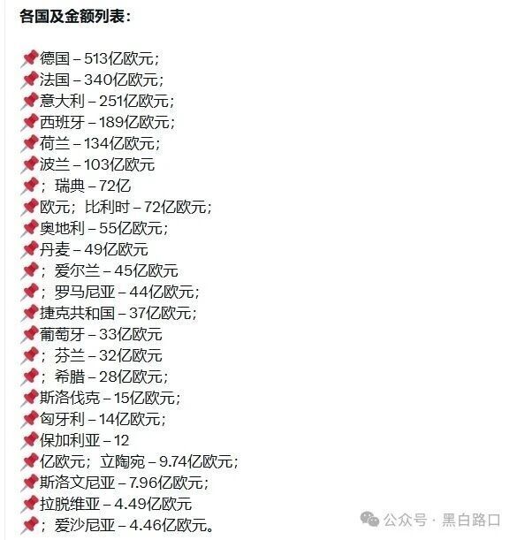 比如,德国要为冻结俄罗斯资产担保513亿欧元,法国要担保340欧元,匈牙利担保14亿欧元,斯洛伐克担保15亿欧元……。