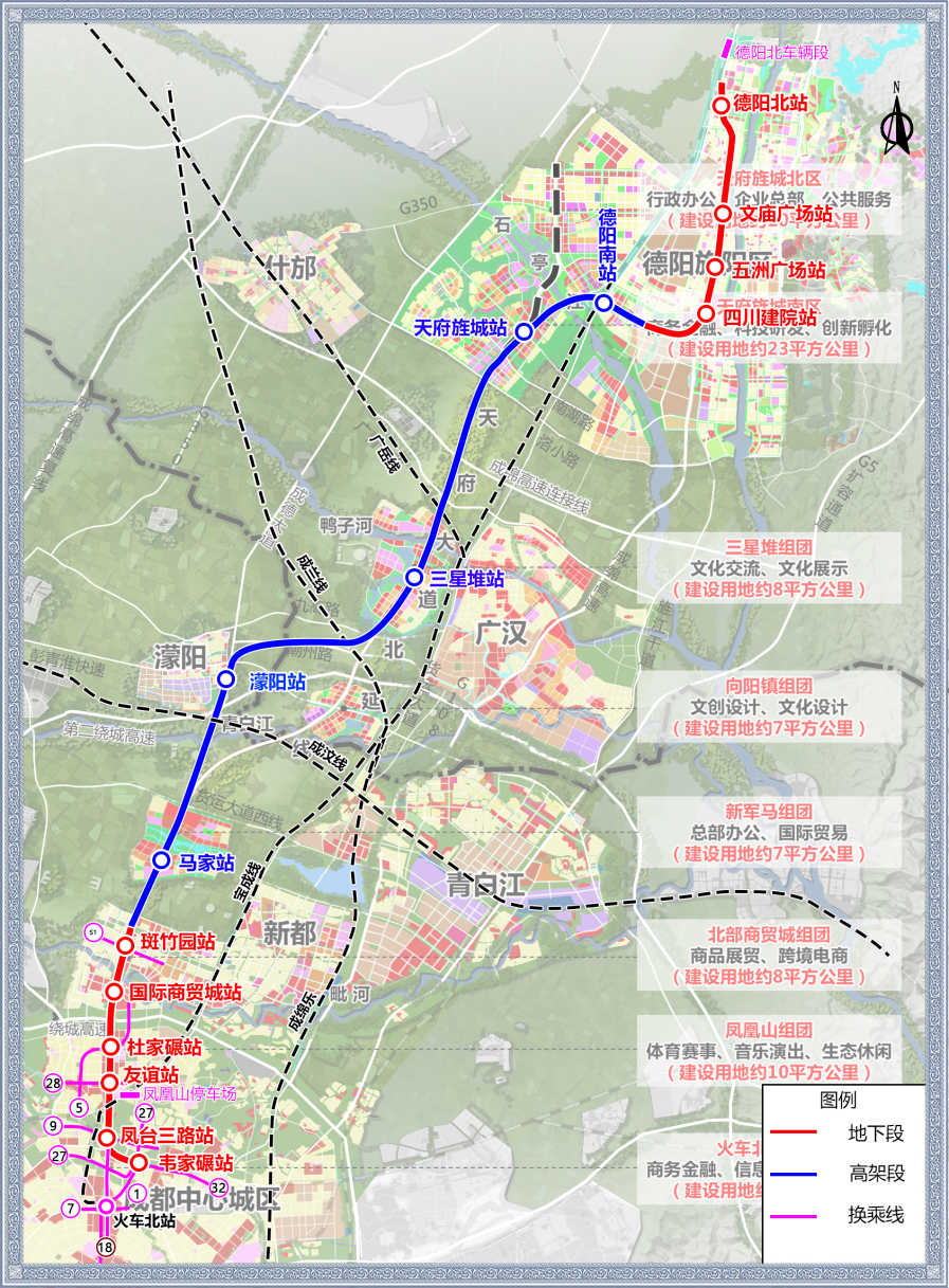 一是对成都站至青白江站的既有线段进行升级,通过增设五福桥、兴城大道、五仙庙3座车站,并改造成都站和天回镇站2座既有站,大幅提升服务密度与便利性。