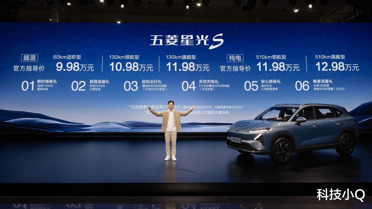 上市即日起,凡通过五菱汽车官方APP,9.9元即刻下订,可享限时购车六重好礼,至高价值20000元;包括限时焕新礼:享至高7000元置换补贴;超值金融礼:享至高5000元分期贴息;轻松出行礼,享赠送价值3000元全车3M太阳膜(不含60km车型);无忧充电礼,享EV车型赠送7kW充电桩(不含安装);安心质保礼,享首任车主三电终身质保;畅意流量礼,享全系3年免费智能化车机流量(2G/月);至2024年12月31日前,可叠加享受国家以旧换新补贴至高20000元。