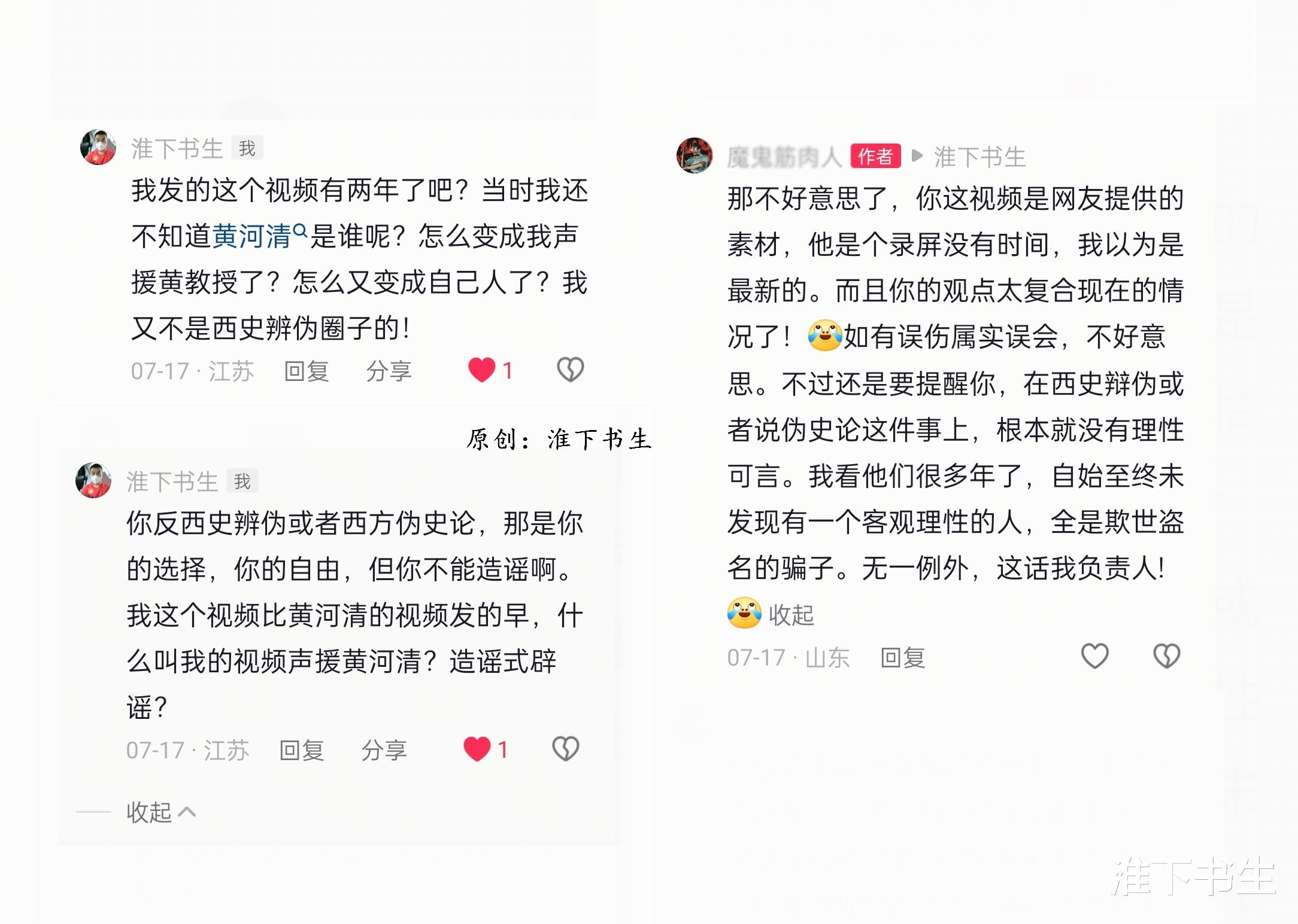 前两天淮下书生的一位粉丝告诉我,一位反对伪史论的,甚至说是反对所有西史辨伪的“西史全真派”出视频挂了我的视频!