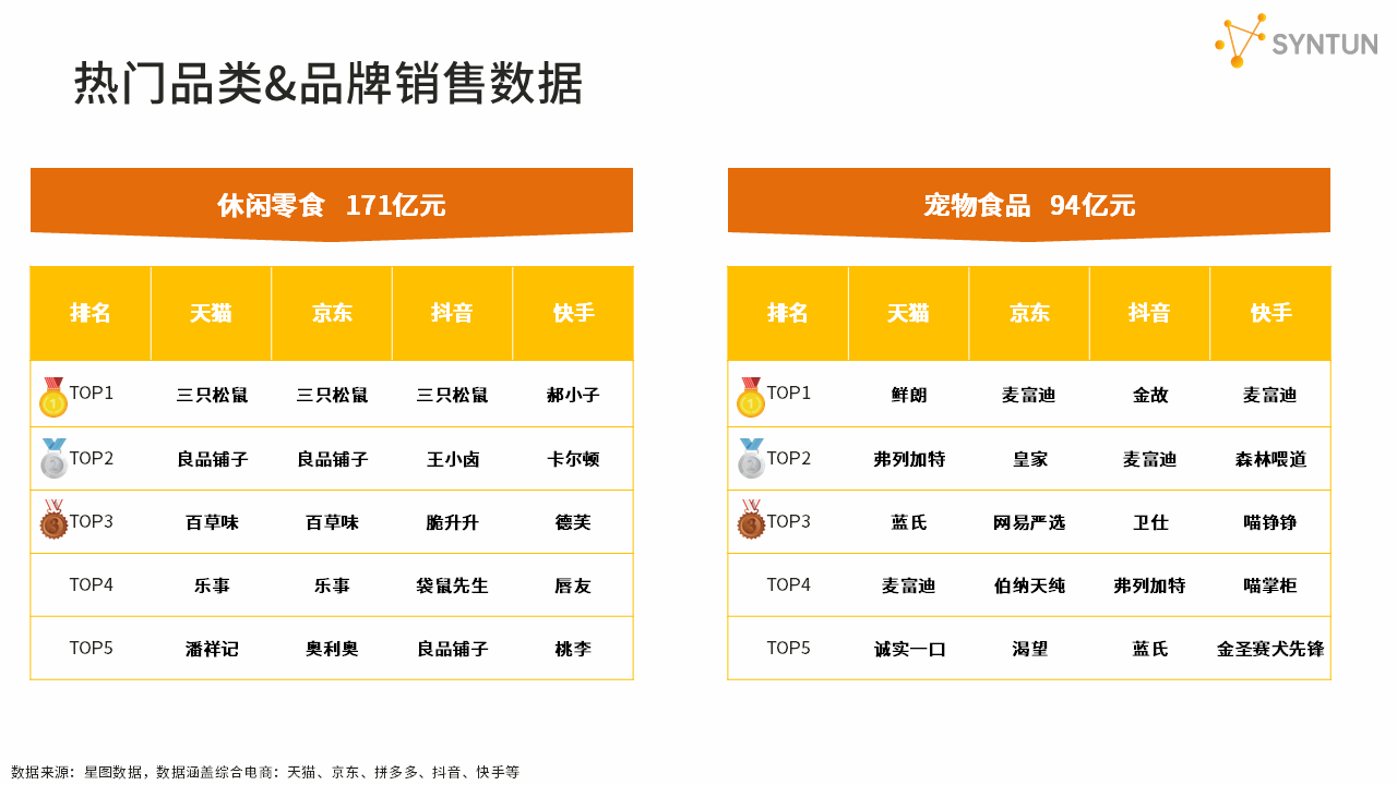 品牌方面,各热门品类品牌销售额排名如下图显示: