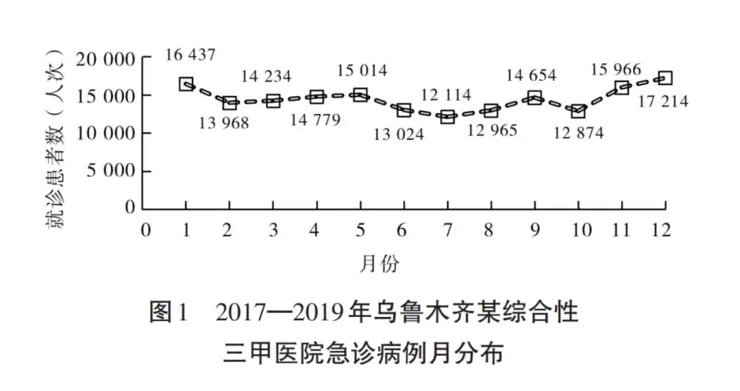 然后我又找了一些医疗方面的数据,内地的话找了一个简单的急诊就诊分布,你们可以非常直观的看到,在1月和12月,急诊的就诊患者是明显高于其他月份。