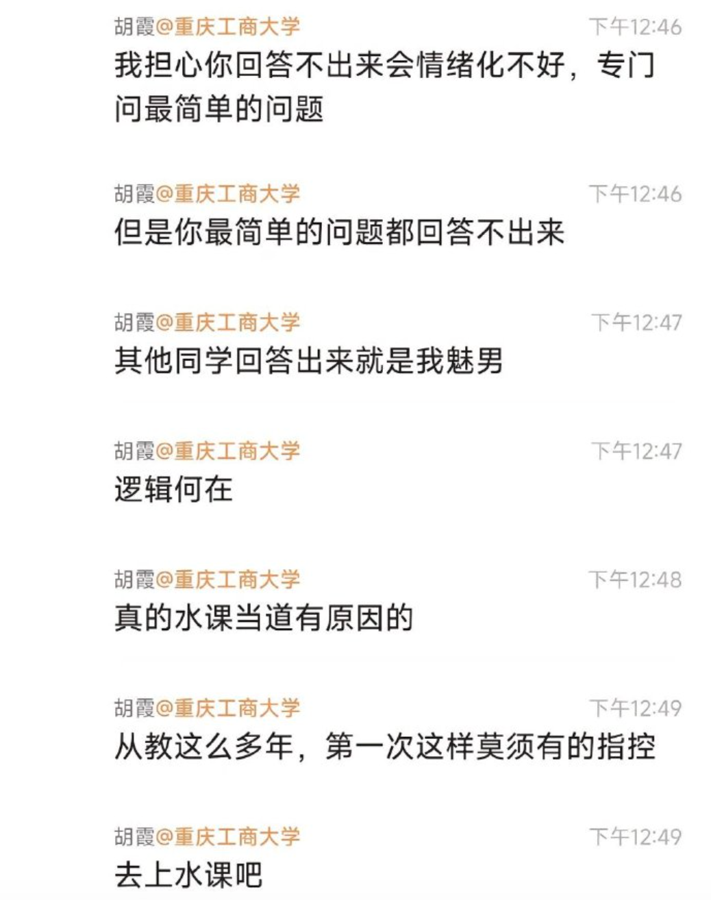 该女生通过学校匿名平台“工商秘密”发布针对胡霞老师的负面言论,文中称其“上课刻薄”“魅男行为频出”“用教师身份压人”等,言辞带有主观情绪与片面解读。