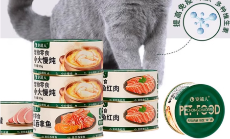 优质猫主食罐头的挑选要点:宠超人猫罐头共有六种口味,包括羊奶鸡丝、小火慢炖、金瓜吞拿鱼等。除鸡肉口味为细腻慕斯质地外,其余均为可见肉块搭配肉汤。除鸡肉口味为细腻慕斯质地外,其余均为可见肉块搭配肉汤;主要选用冻金枪鱼白肉、冻鸡胸肉、冻金枪鱼红肉和冻全鸡四种肉源。配方简洁明了:鸡肉罐为纯肉加内脏和水,金瓜吞拿鱼罐在纯肉和水的基础上添加了板栗南瓜,其他口味均为纯肉加水。所有罐头均添加了牛磺酸、海藻粉等7种营养素。
