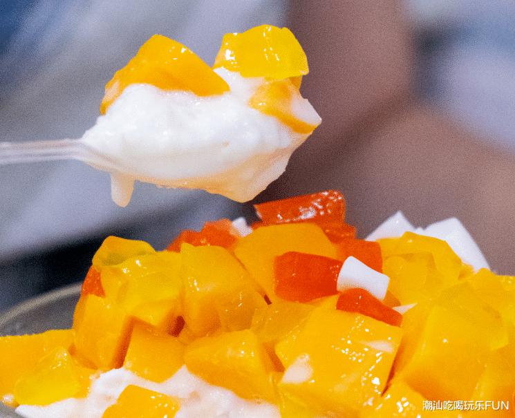 但这是场与时间的赛跑!牛奶冰遇热迅速融化,必须趁它未变“牛奶湖”前猛挖一勺!冰沙在舌尖化作淡淡奶香,水果的清甜紧随其后,椰果“咯吱”一弹,38℃的烦躁瞬间溃不成军。