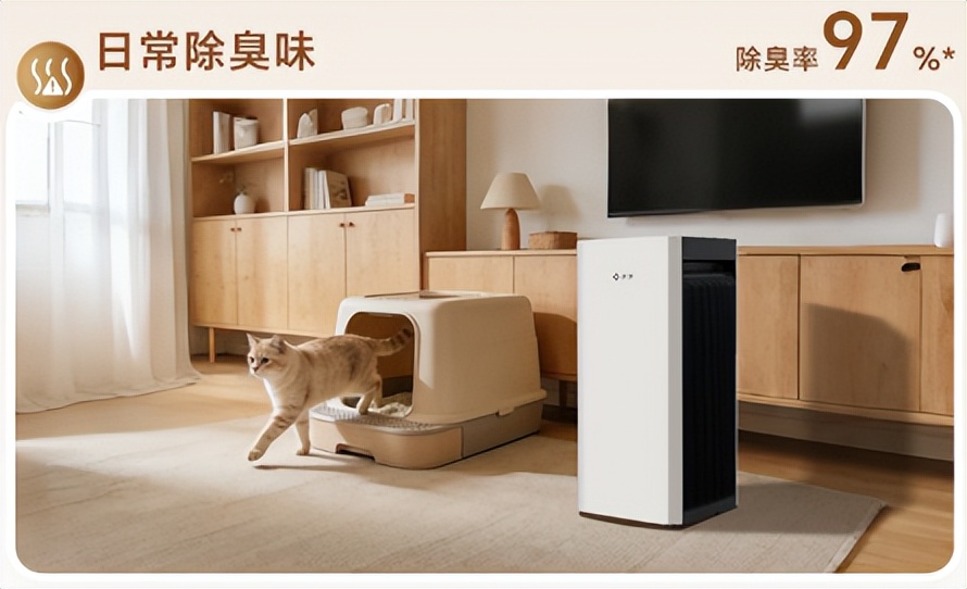 二、根源除味:不掩盖、真分解,告别宠物异味尴尬很多养宠家庭都有过这样的经历:买了空净,看似能除味,实则只是用香精掩盖异味,关掉机器后,猫砂味、狗体味立马反弹,混合着香精味,反而更刺鼻。这也是普通空净的致命短板——只能吸附异味,不能彻底分解,饱和后还会反向释放,造成二次污染。