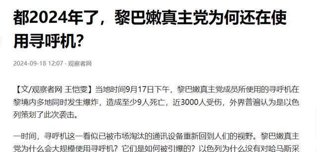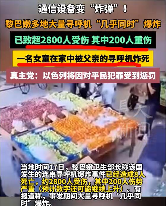 2024年9月17日,这天原本是个合家团圆的日子,结果呢?这天在黎巴嫩却上演了一场惊心动魄的科技恐怖袭击!