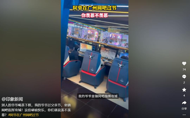 在视频中,70 岁的广州大爷戴着炫彩 LED 耳机窝在网吧角落,用带着粤语口音的普通话指挥喊麦 “卡好时间!卡好时间!推平敌方”,而旁边的 00 后孙子举着手机急得跳脚:“爷爷不是说好回家吃饭的吗?谁来管管啊!饭也不吃,家也不回!”