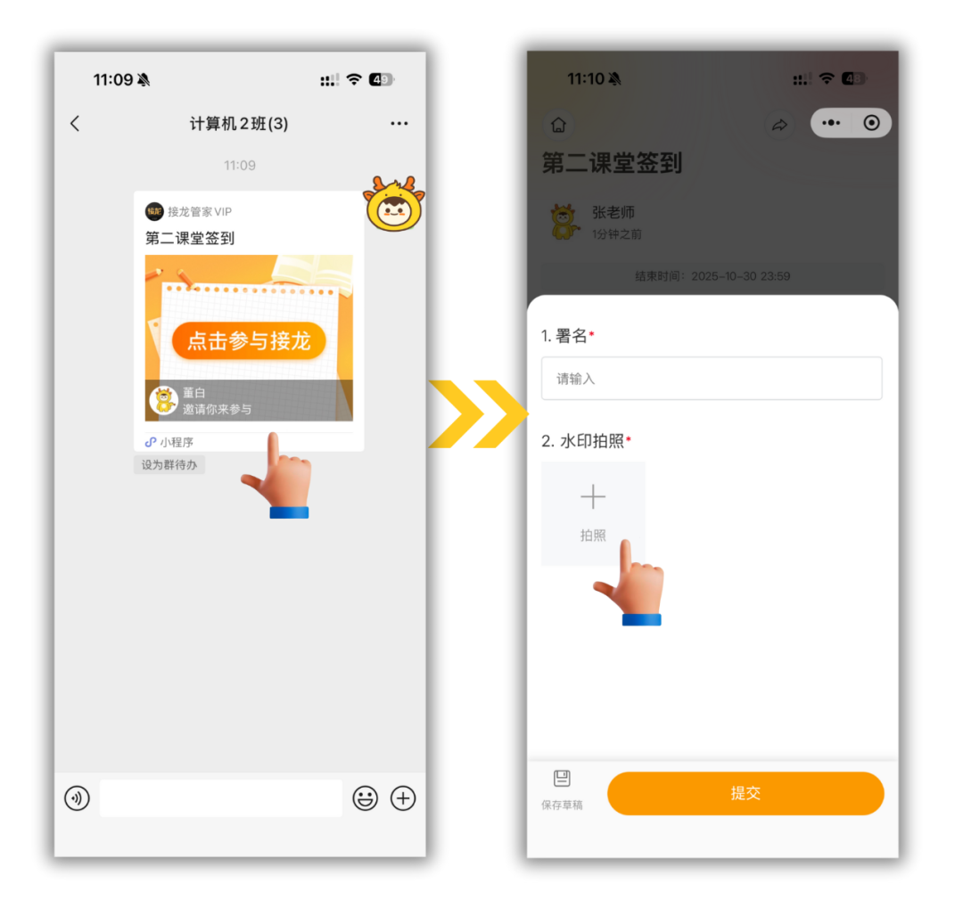 活动主办方无需下载APP,也不用强迫同学们下载,微信/QQ内直接搜索“接龙管家”,认准黄色的接龙图标。