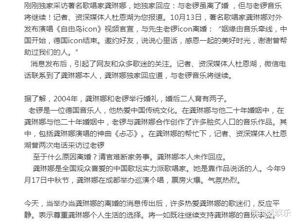 毕竟,龚琳娜和老锣虽然在婚姻上有所分别,但是对于音乐事业的追求,他们依旧继续下去。