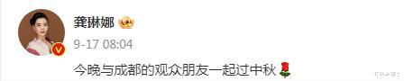 龚琳娜发文:“今晚与成都的观众朋友一起过中秋。”