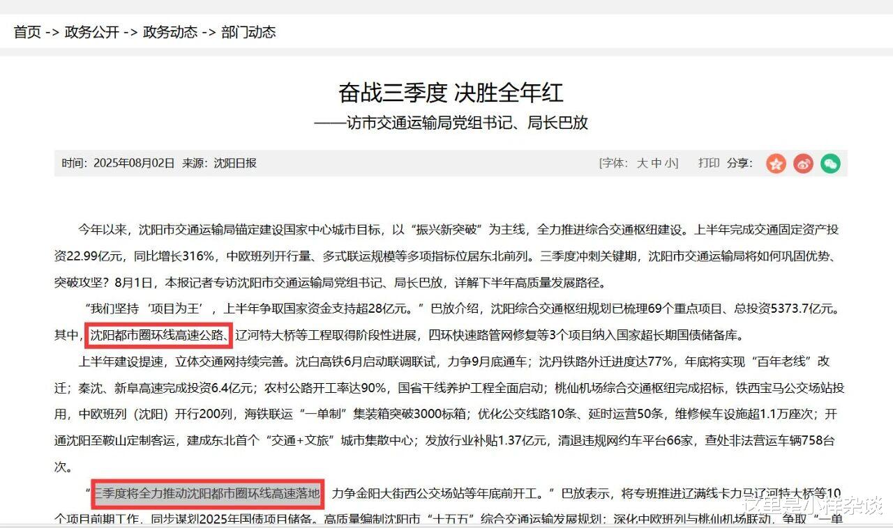 曾消失的沈阳都市圈环线高速公路或将落地