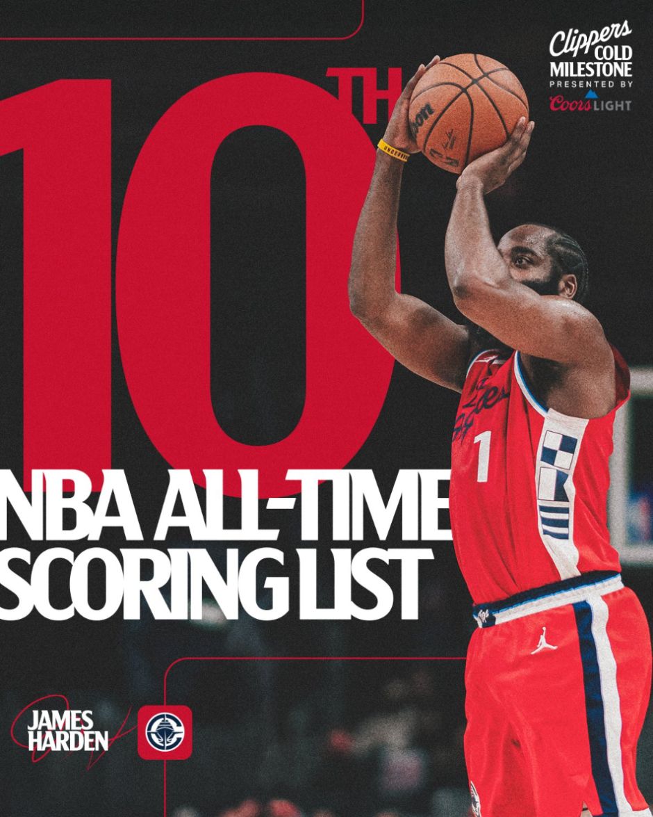 哈登得分来到历史前十