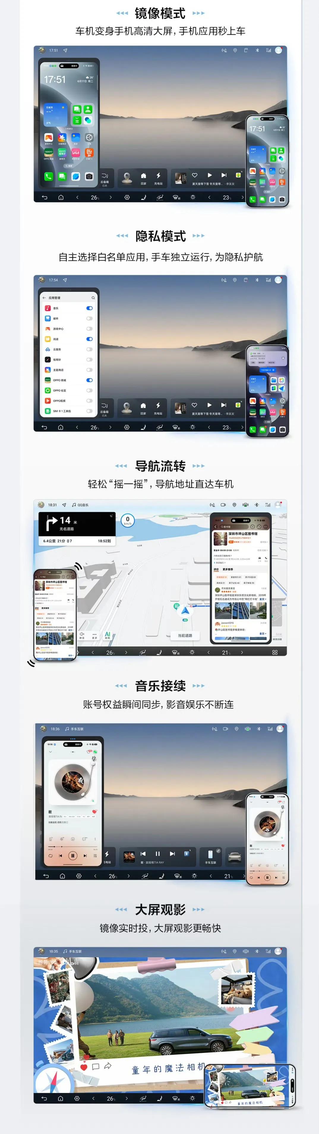 长期以来,比亚迪坚持用技术创新满足人类美好生活,依托强大的研发能力与开放的生态布局,与国内主流手机品牌携手同行。手机车机生态一体化后,用户无需重复下载相同软件;在通勤路上处理工作信息,或旅行中点播喜爱内容时,将手机应用的页面和状态无缝流转至车机中。手车互联功能极大提升了用户的用车体验,让出行更便捷更安全。