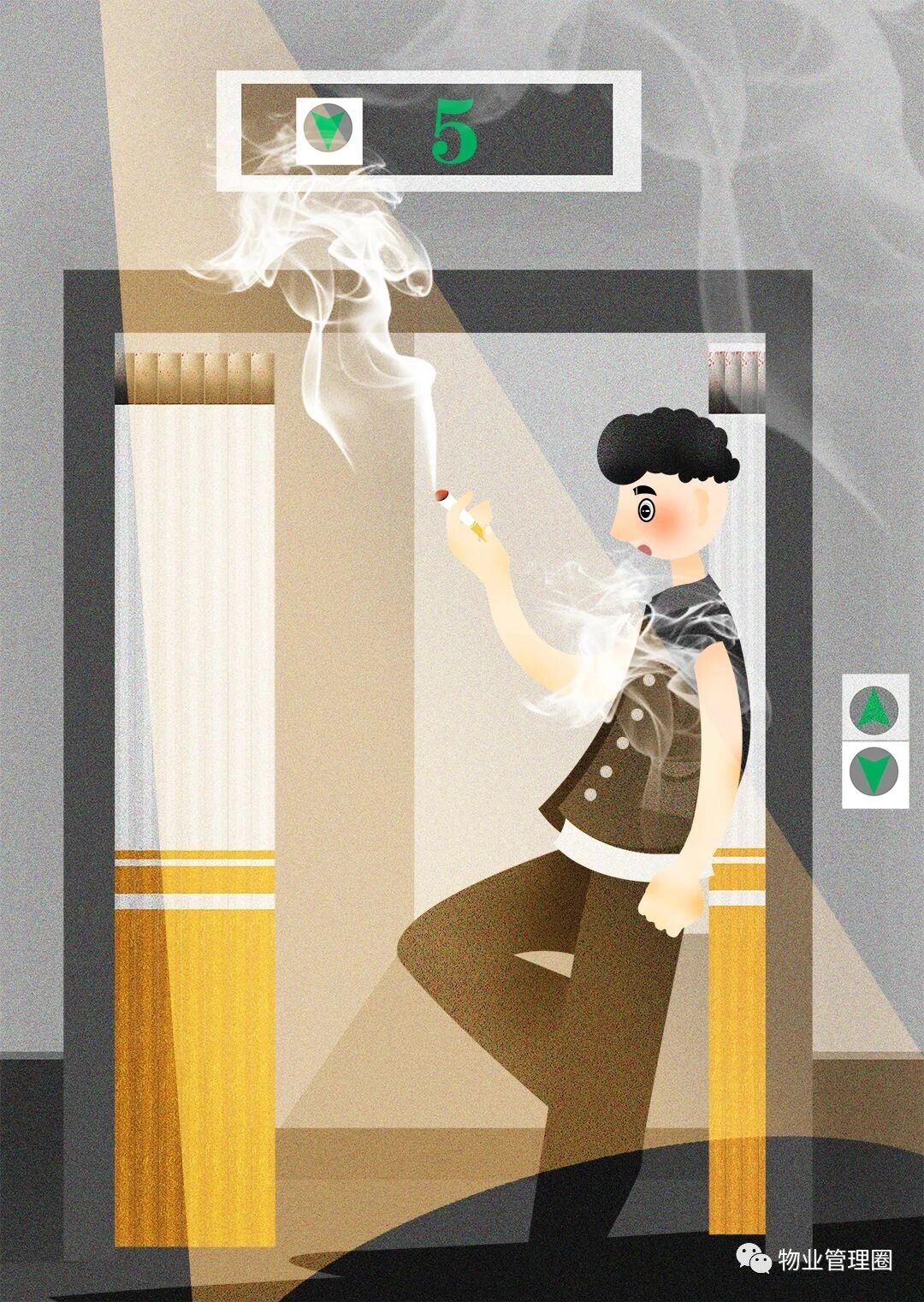 “那天我停好车后,一进电梯就看到里面有人手里拿着烟,虽然他刻意将点燃的香烟背在了身后,但浓浓的烟味还是弥漫了整个电梯。”