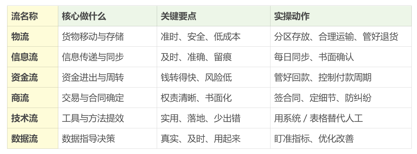 你现在可以想想,自己的公司里,哪个流最薄弱?是仓库效率低?是信息传递慢?还是资金周转慢?找准了问题,下手去解决,效果自然就出来了。