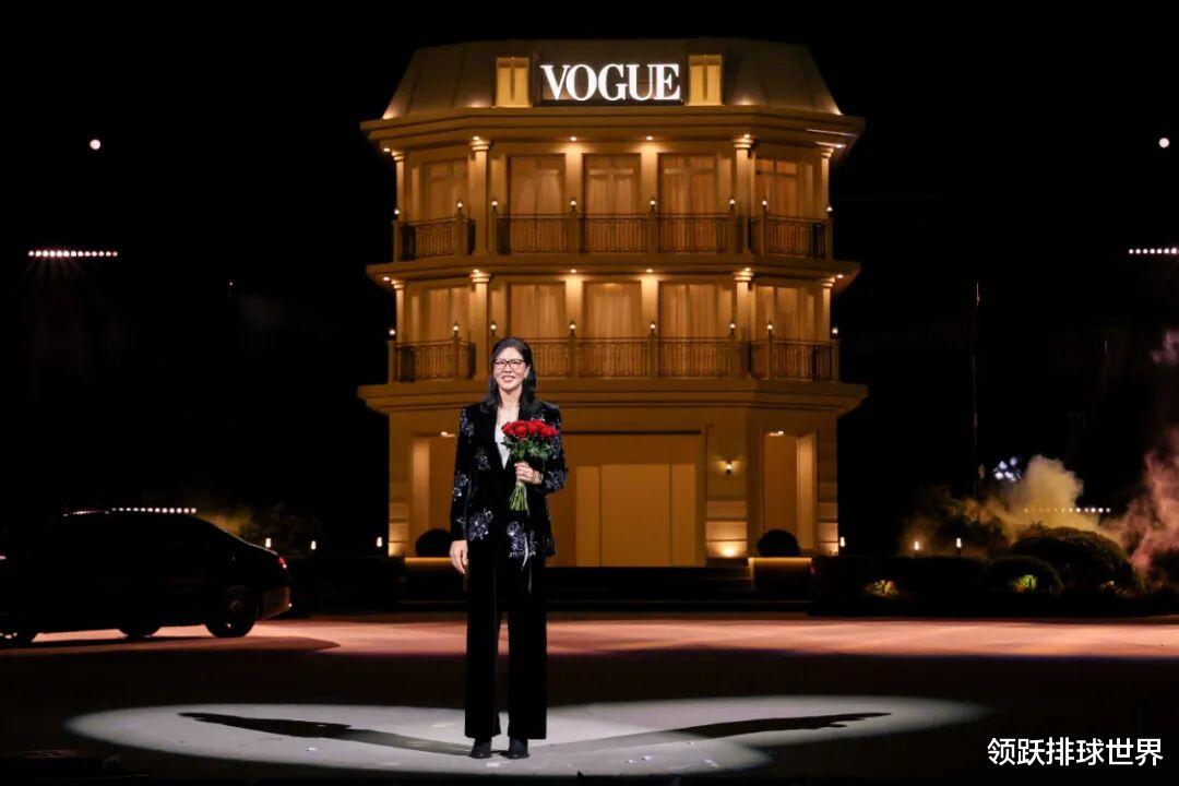 盛典现场布景仿佛欧洲古典三层宅邸,巨大的“VOGUE”字样熠熠生辉,灯光追随之下,65岁的郎平手捧红玫瑰,站在中央,笑容温婉、从容自信,一如她几十年来面对赛场与人生风浪的态度。