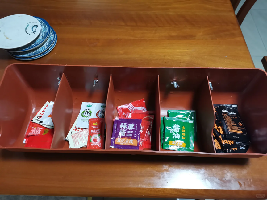 不同的调料可以放置在不同的小格子里面,比花钱买的调料收纳工具还好用。