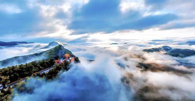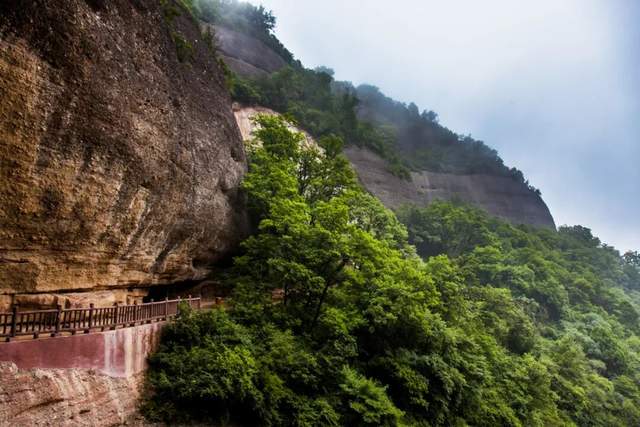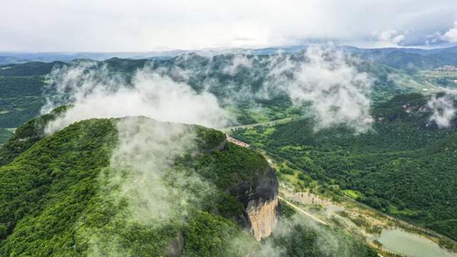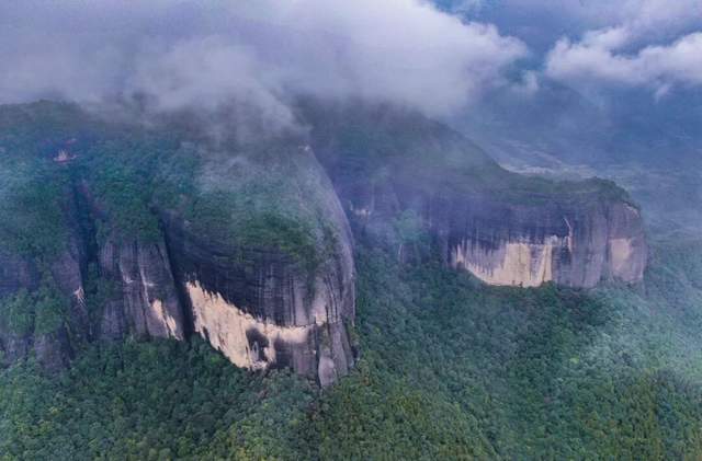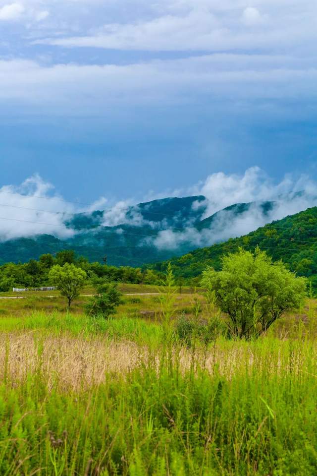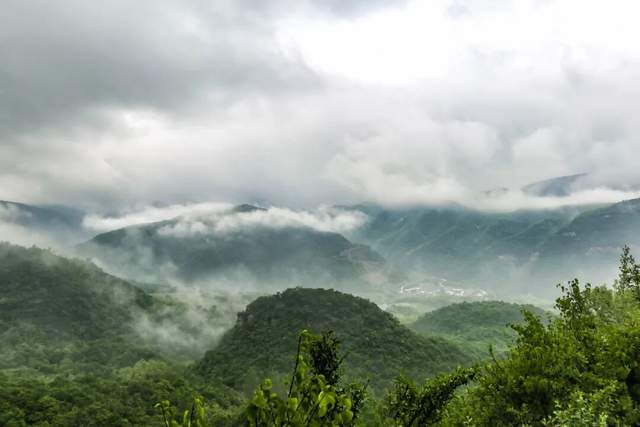 远望山脊如墨染,林间色彩逐渐鲜艳