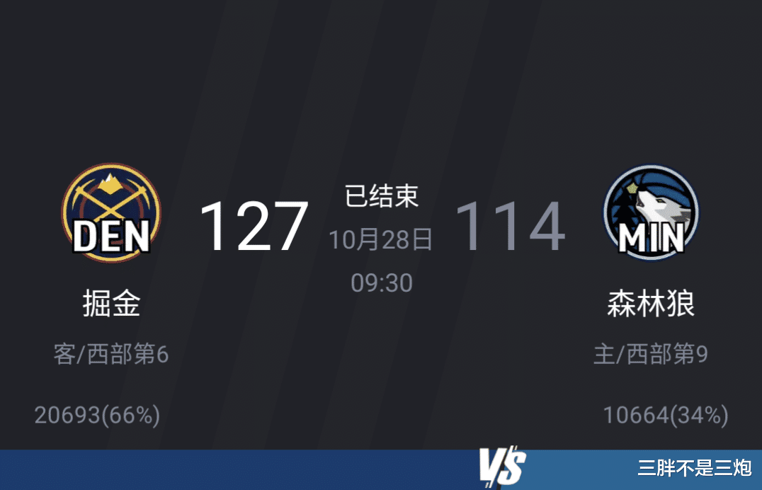 丹佛掘金 127:114明尼苏达森林狼