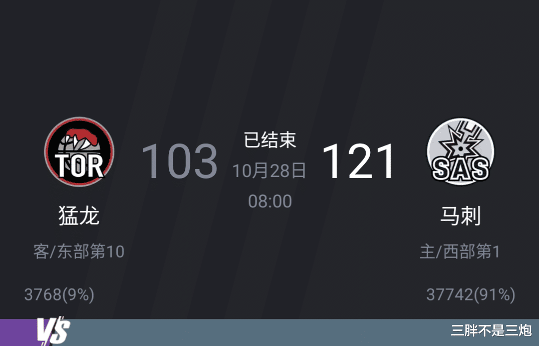 多伦多猛龙103:121 圣安东尼奥马刺