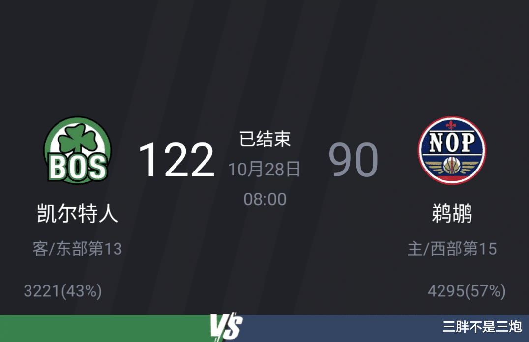 波士顿凯尔特人 122:90 新奥尔良鹈鹕