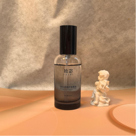 (2)质地轻盈,使用体验好第一次用的时候,我就被它那种水润感给吸引了。瓶身是透明简约的,放在化妆包里很方便,占空间也不大。按压泵的设计特别顺手,每次按三下刚好够用。而且按出来的精油不像那种厚重型的,流动性非常好,涂抹在头发上也不腻,吸收得很快。即便是干发的时候使用,也完全不会感觉到油腻,反而能让头发瞬间变得更加顺滑有光泽。
