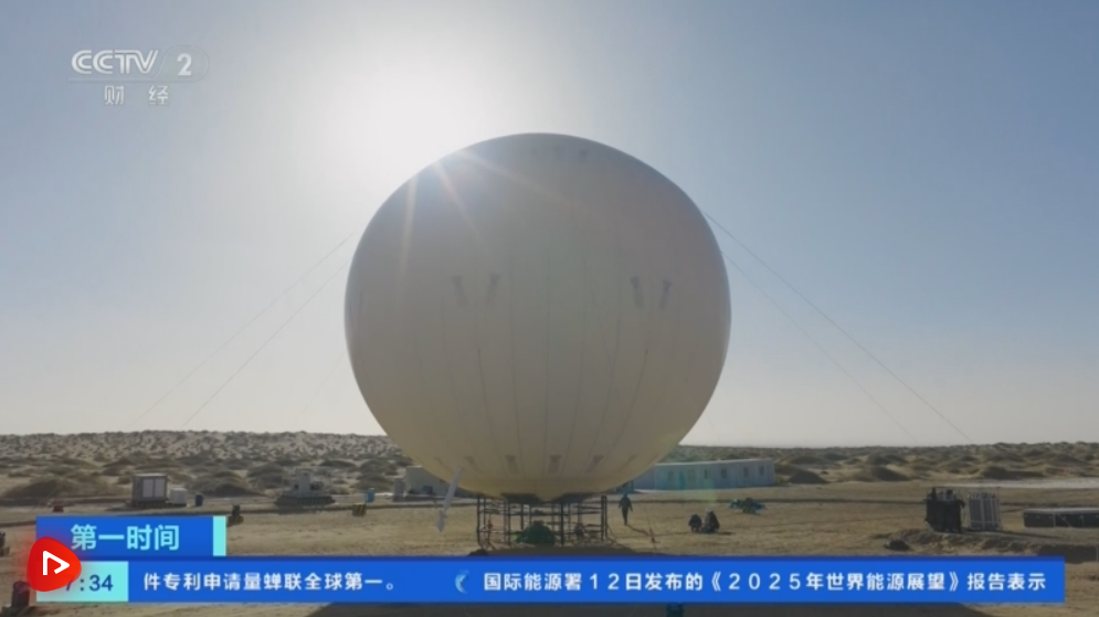 总台央视记者 张伟:内蒙古阿拉善左旗,全球最大高空捕风伞实验测试现场。随着氦气球缓缓升空,牵引着展开面积达5000平方米的捕风伞在空中打开,标志着我国自主研发的大型伞梯式陆基高空风力发电项目试验取得重要进展。