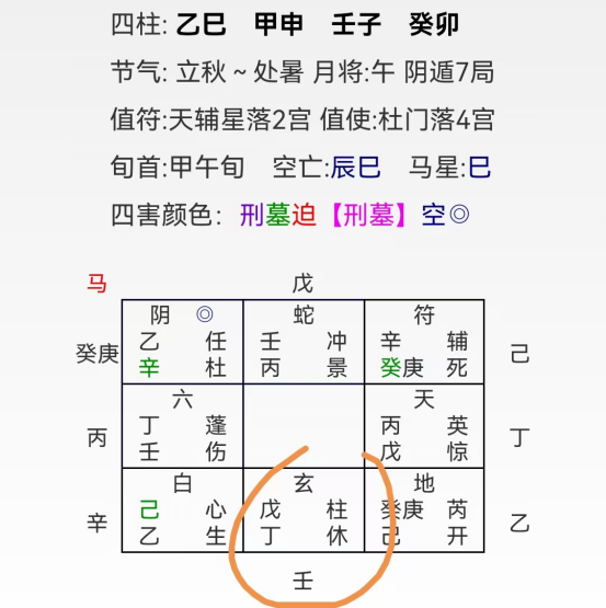 这可能是许多现代人的共同困境。钱不是没来,而是没留住。我以他提问的时间起局,重点审视了代表钱财的核心符号——戊(天干中的戊在奇门中代表资本、现金、工资)所在的宫位情况。局像一出,原因便清晰地映射出来。