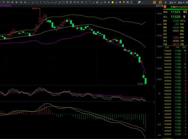 生猪2511合约:基本面:随着双节备货的开始,屠宰企业的开工率有所上升,但相较于供应的增加仍然显得较为疲软,考虑到节日的消费透支,节后消费预计会有所下降生猪市场供过于求,猪价持续走弱,供应压力较大,预计短期猪价仍将处于弱势行情。技术面:生猪在节后开盘跳空低开持续下跌,今日持续走弱,不过目前从盘面来看生猪得持仓量开始加剧,多空资金开始博弈交易量开始增加可以关注生猪近期能否止跌,先看技术面得修复操作建议:生猪反弹高空为主,见止跌企稳带止损可以轻仓尝试低多