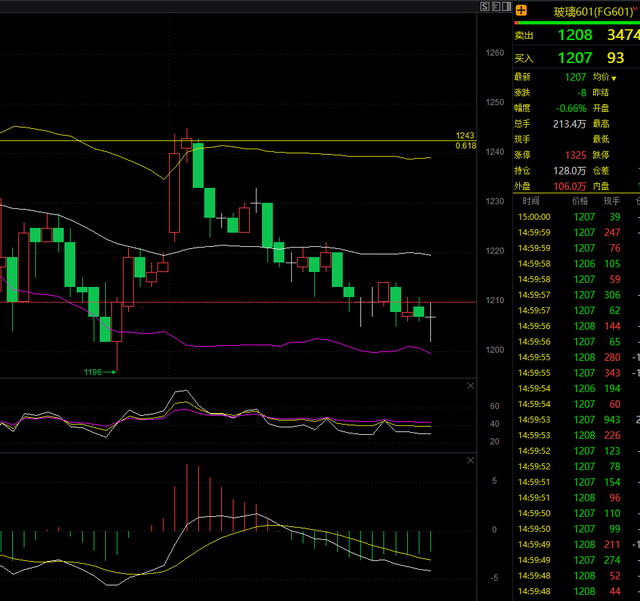 玻璃2601合约:基本面:业和信息化部等六部门联合发布建材行业稳增长方案,严禁新增平板玻璃产能,2025 年底前完成产能置换,这可能对玻璃产量产生影响,进而影响供需关系。。技术面:玻璃短线趋势共振抬头MACD金叉向上,下方支撑1200-1180极限位置1160,三十分钟即将金叉,以震荡为主上方需要关注1245得上方压力为主,不破短线以区间震荡对待操作建议:玻璃低多为主平台支撑1200-1180可以尝试趋势布局