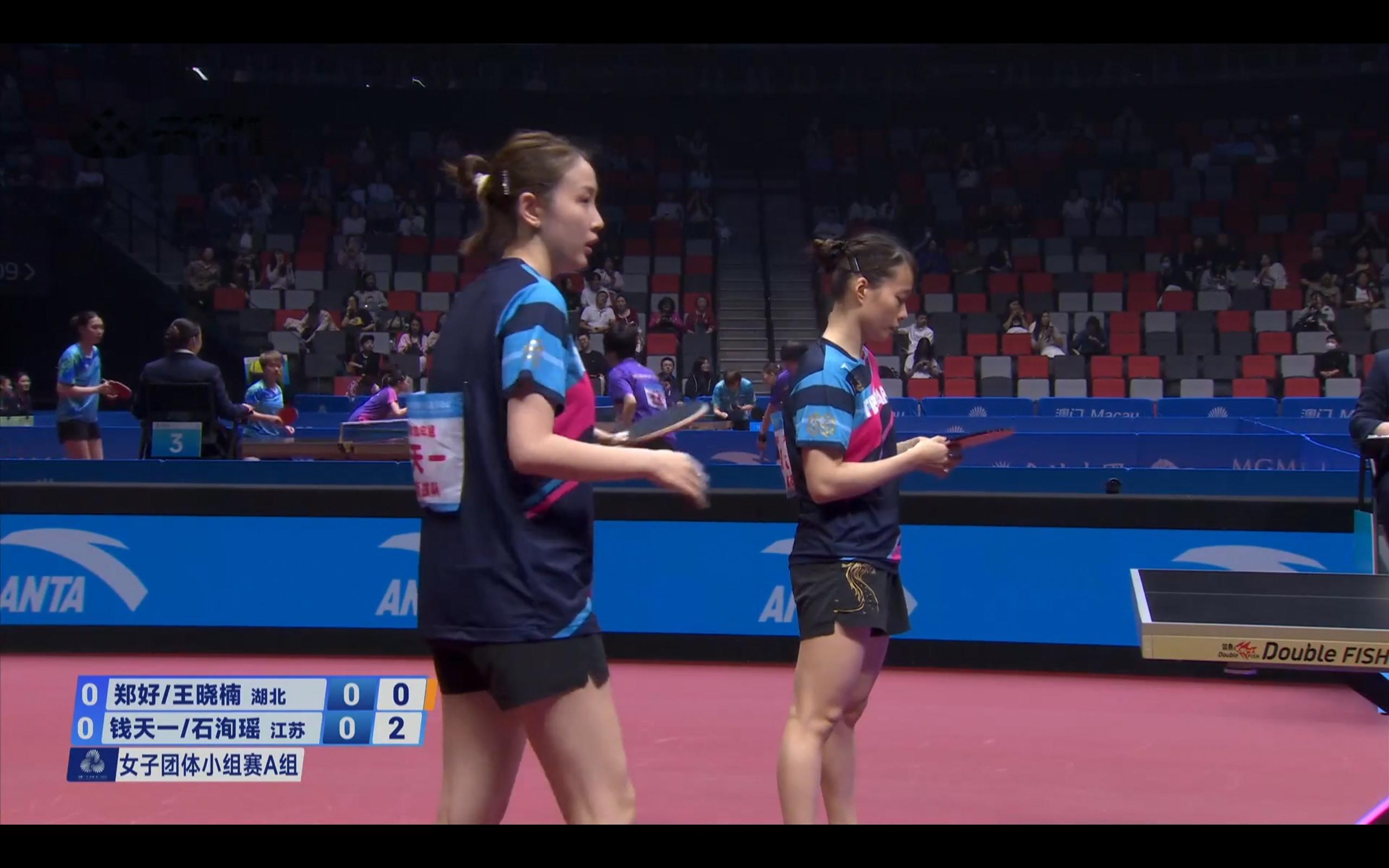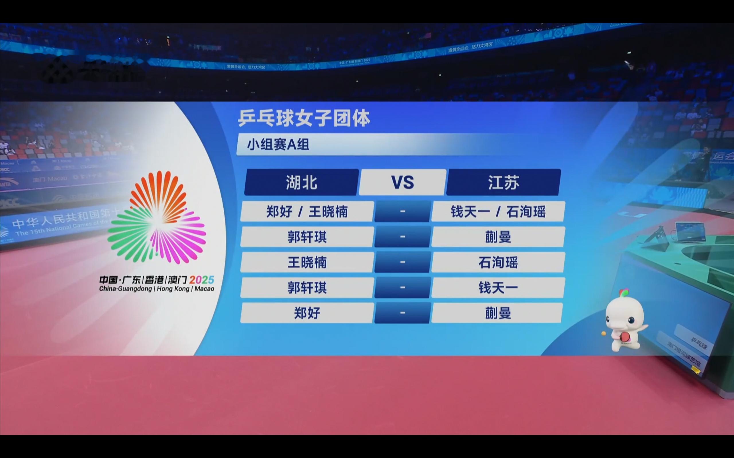 本场女团采用五盘三胜制,每盘五局三胜制,对阵形势详情如下图。第一盘,江苏钱天一/石洵瑶VS湖北郑好/王晓楠。第二盘,蒯曼VS郭轩琪。第三盘,石洵瑶VS王晓楠。第四盘,钱天一VS郭轩琪。第五盘,蒯曼VS郑好。