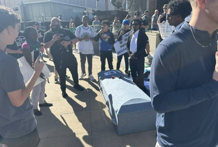在交易消息传出之后,就有很多达拉斯球迷开始表达不满,只不过这也改变不了交易的发生。在达拉斯独行侠球馆前,很多球迷更是进行了抗议活动,甚至有球迷抬棺材摆在美航中心门口,写道:独行侠安息吧!这样的交易让球迷十分不理解,毕竟送走的可是东契奇,职业生涯场均28+8+8的球员,且只有25岁。