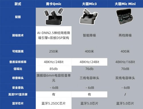 二、核心性能数据对比我将三款领夹麦克风关键配置和功能整理成了详细对比表,将核心信息直观呈现。通过这份汇总,大家可以快速掌握每款产品的特点与差异,从而更高效地判断哪一款符合自身需求,轻松做出理性选购决策。