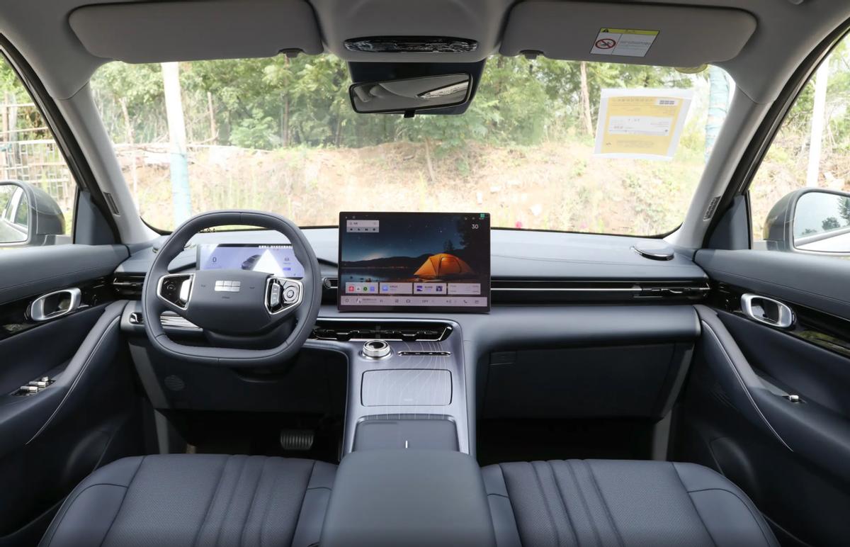 2026款银河E5入门版也是搭载15.4英寸中控屏+10.2英寸仪表,车机是银河Flyme Auto系统,功能还是比较丰富的,日常使用是没有问题的,但在智能交互和影音体验上有明显减配,比如音响系统仅为6扬声器的高保真配置,而且入门版没有中高配车型具备的诸多提升用车便利性的智能舒适配置。