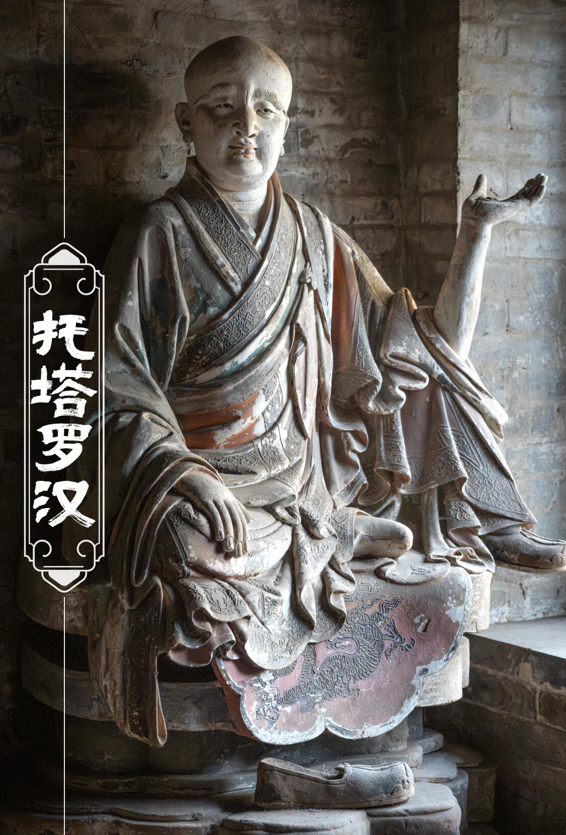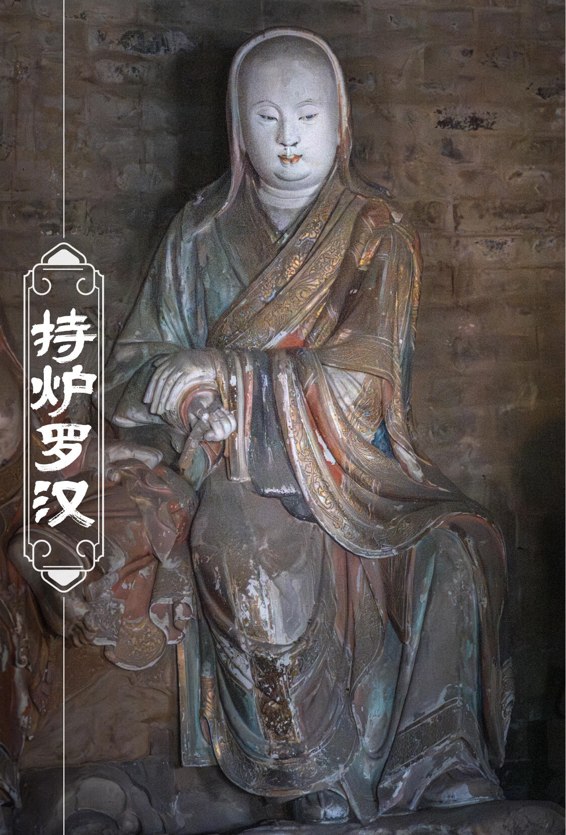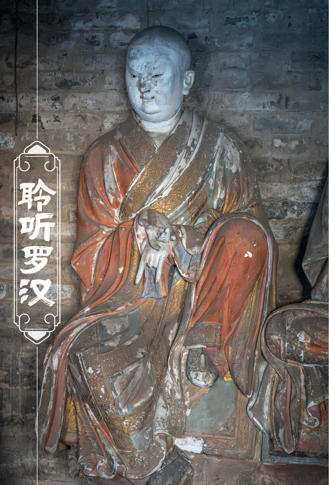 更妙的是地域特征的鲜活呈现。一尊浓眉深目的罗汉,高挺的鼻梁和络腮胡让人联想到丝绸之路上的胡商;而持经罗汉的宽额丰颊,分明是中原士大夫的模样。这种"混搭"在北宋佛教艺术中极为罕见,有学者推测,这些塑像可能出自游历各地的"行塑"工匠之手,他们把汴梁的市井、河西的胡风、江南的秀雅,都揉进了长子县的泥土里。当我们凝视这些面孔时,看到的不仅是十八罗汉,更是北宋帝国的民族熔炉与文化自信。
