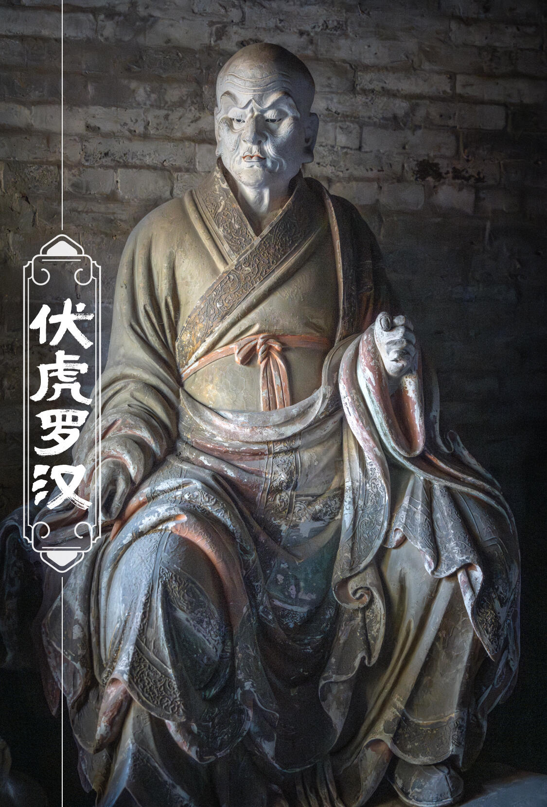 殿内梁架还保持着《营造法式》里的"十架椽屋"形制,驼峰与蜀柱的交接处,仍能看见宋代工匠刻下的墨斗线。但檐角的吻兽已换成明清样式,就像一位身着古装却戴着现代配饰的老者,在建筑史的维度上玩起了"跨时空混搭"。真正的宋代密码藏在佛坛里:南北两壁的十八罗汉坐像,用北宋特有的"减地平钣"手法雕造须弥座,莲瓣边缘的"压地隐起"纹路,比《营造法式》的图示早了近百年。