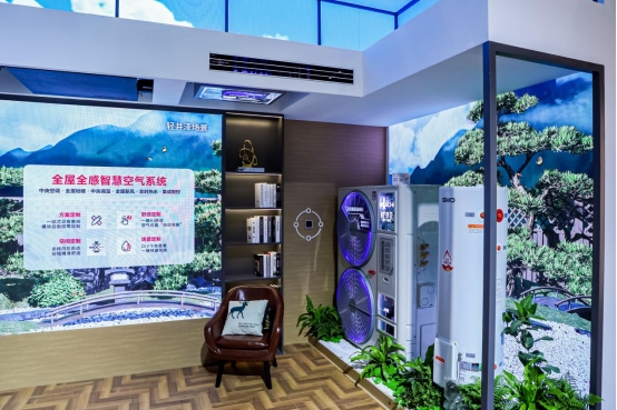 在墅适空间领域,全屋全感智慧空气系统脱颖而出,全屋全感智慧空气系统整合了空调、地暖、新风、除湿、加湿等多种功能,形成一个高度集成的室内环境调控体系。独特的AI智控技术让空气系统具备主动感知、主动服务能力,通过多样化集成方案,一键联动全屋设备,精准定制贴合人体感官的高品质空气,为墅居生活打造四季如春的舒适体验。