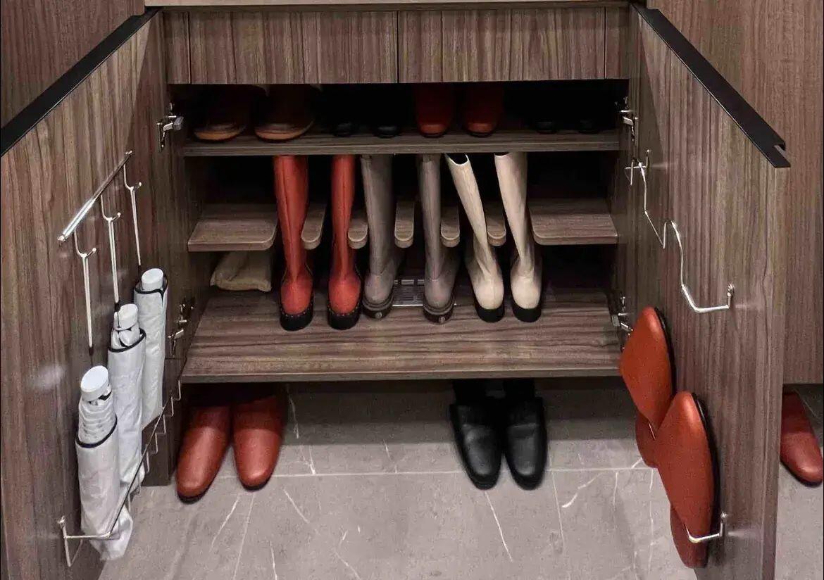 传统鞋柜冬天靴子没地儿放,大家要么是将层板做成活动的,放靴子时取掉一层,要么就东倒西歪堆着。