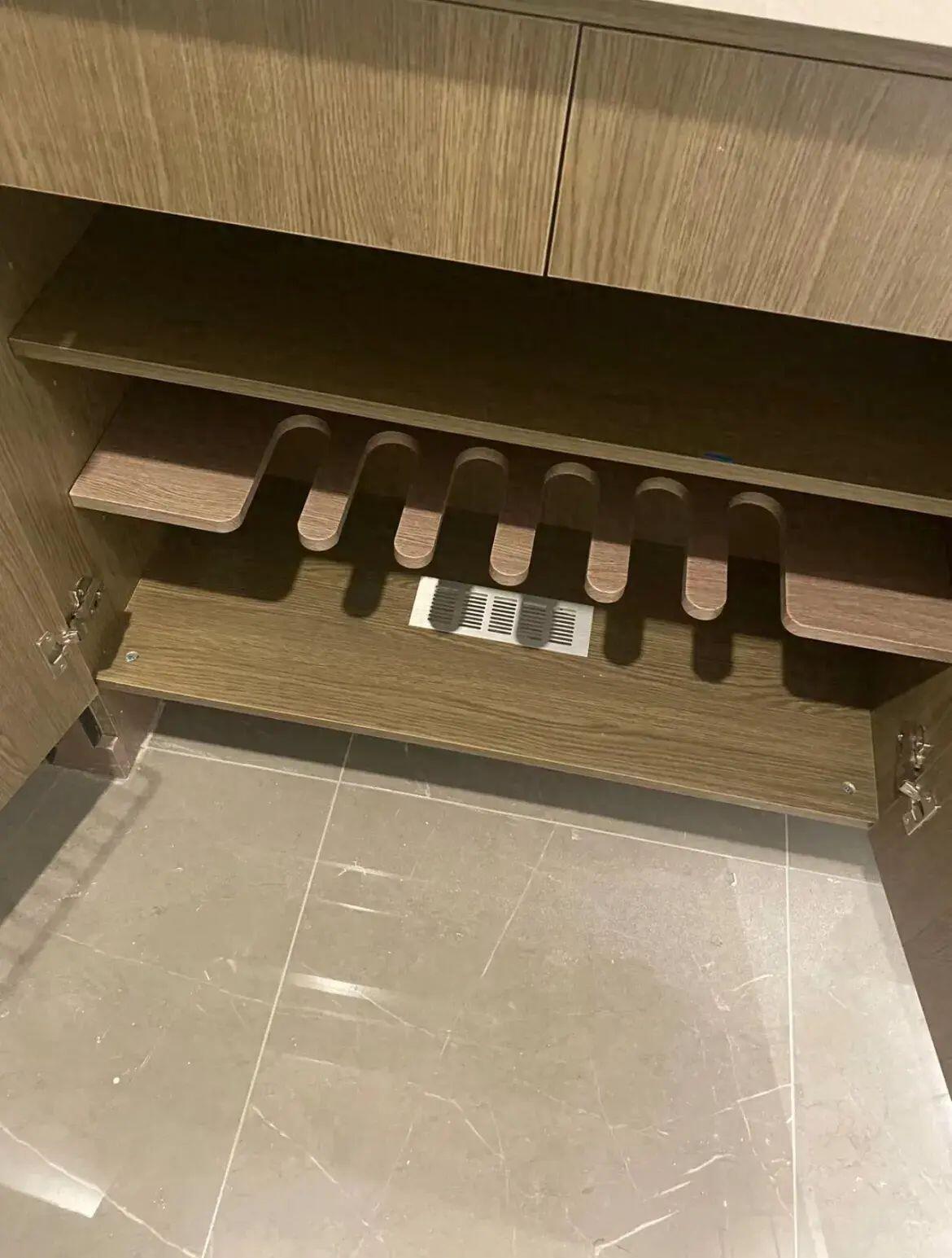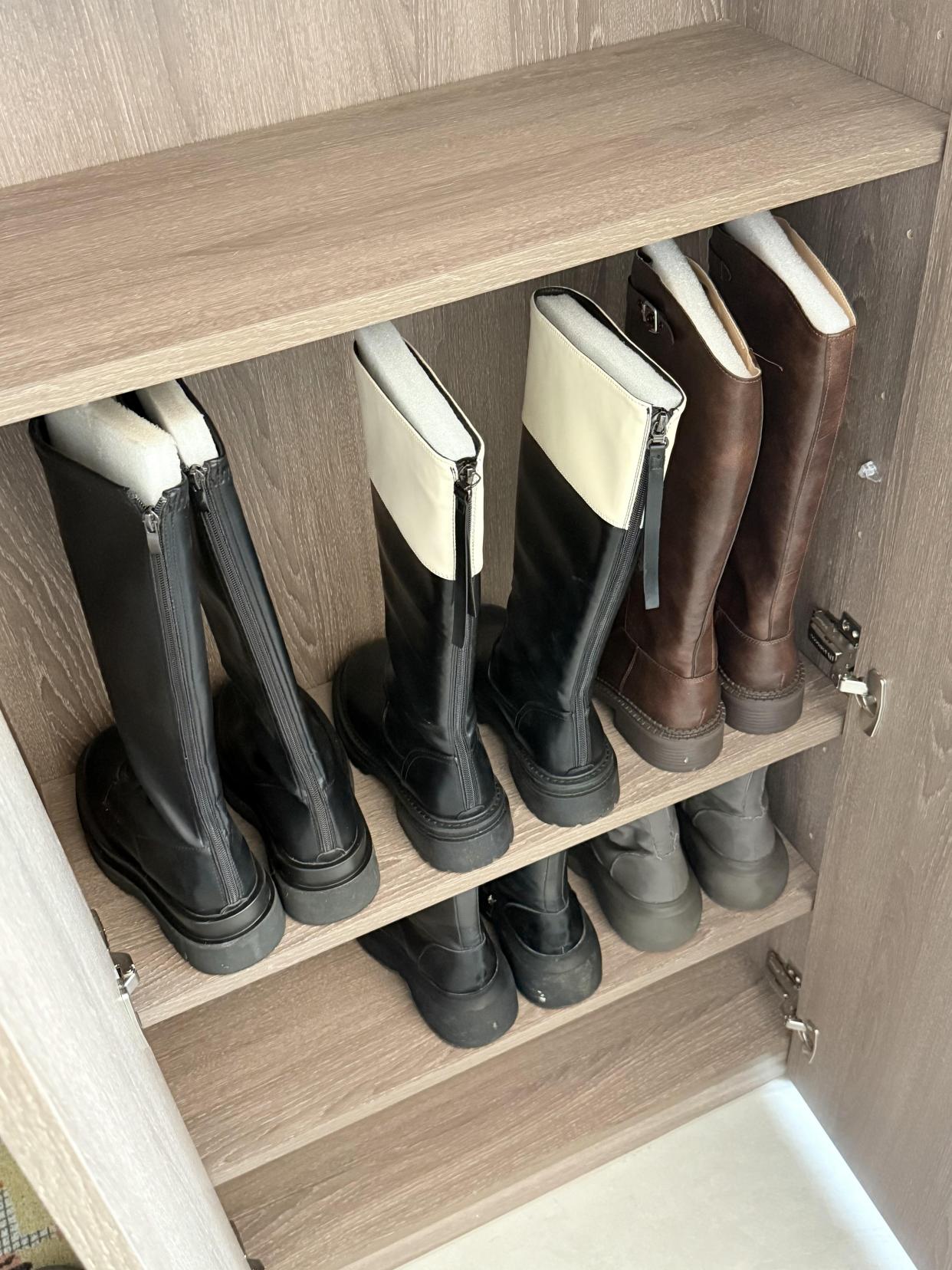 这样还能保护靴型不塌陷,拿取时也不用弯腰翻找。而且不放靴子时,也能放日常穿的单鞋、运动鞋,这间隙不会滑落下去。