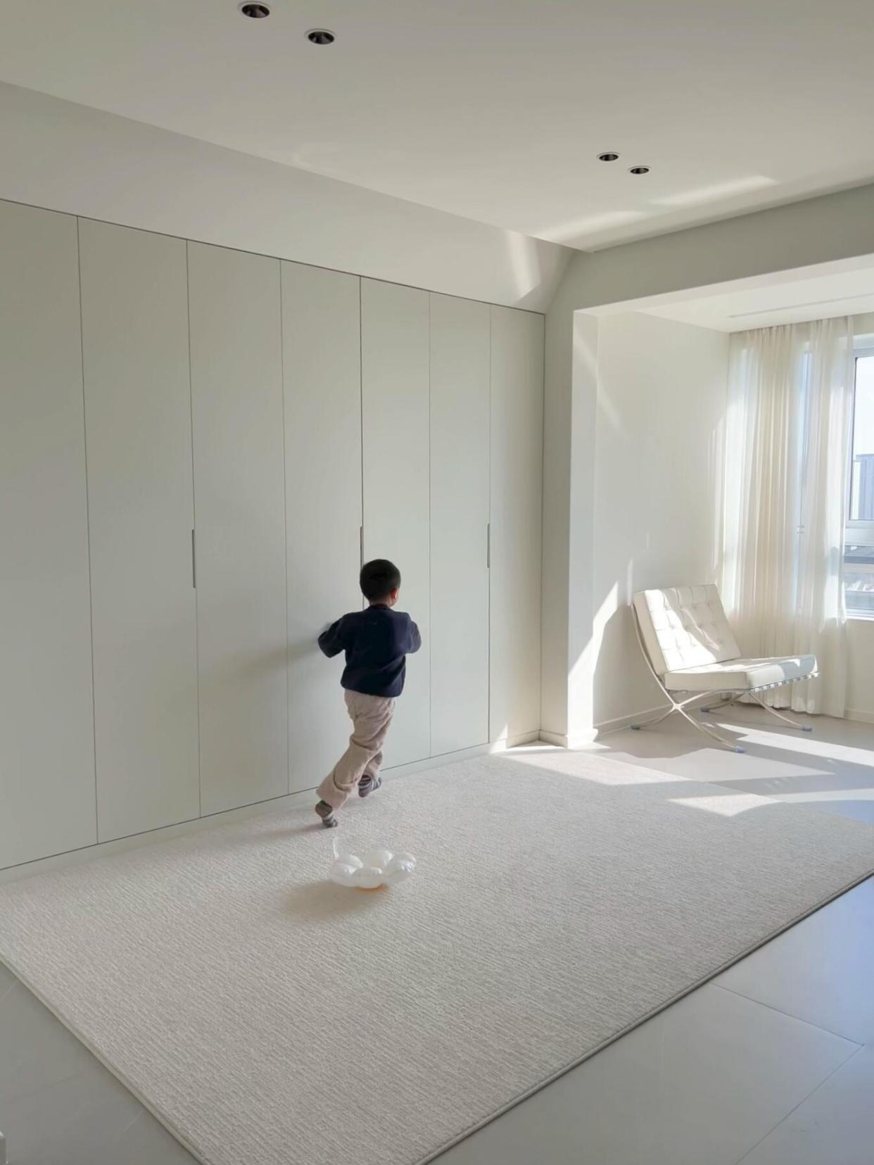 多做柜子,每个空间的物品就近收纳,少选开放格、玻璃门,简洁的平板门既高级又好搞卫生。