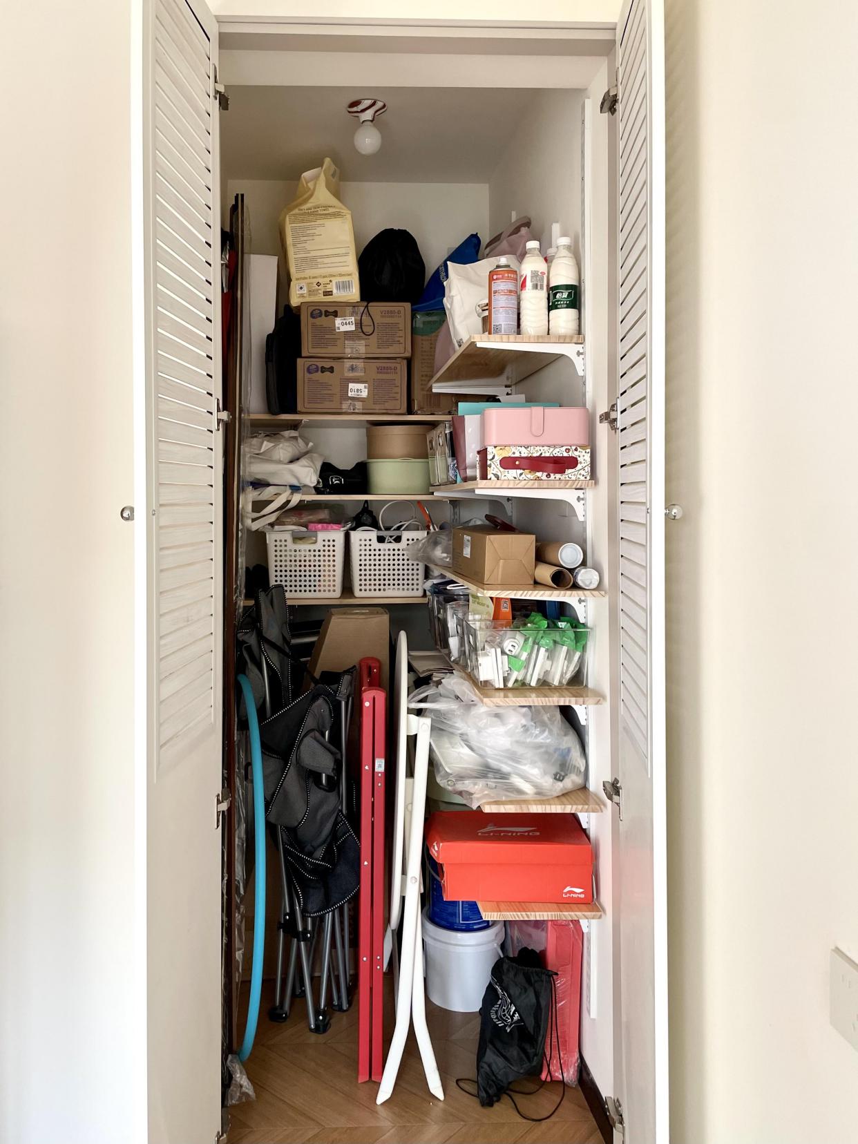 以前总觉得玄关做个鞋柜就够了,可真住进去才发现,有太多杂乱东西没处收纳,婴儿车、行李箱、露营装备、快递箱……这些大件你想想,不收起来得多乱。